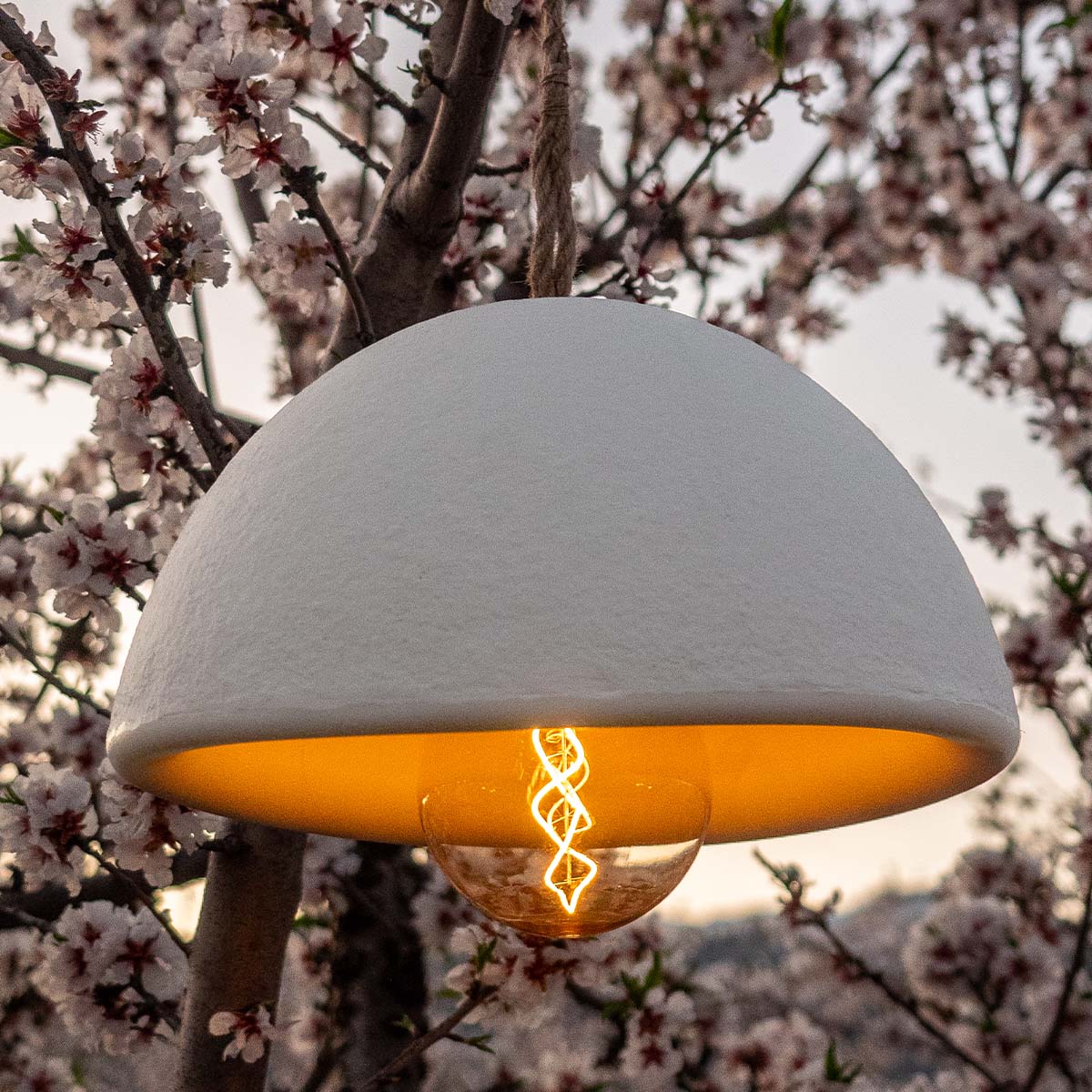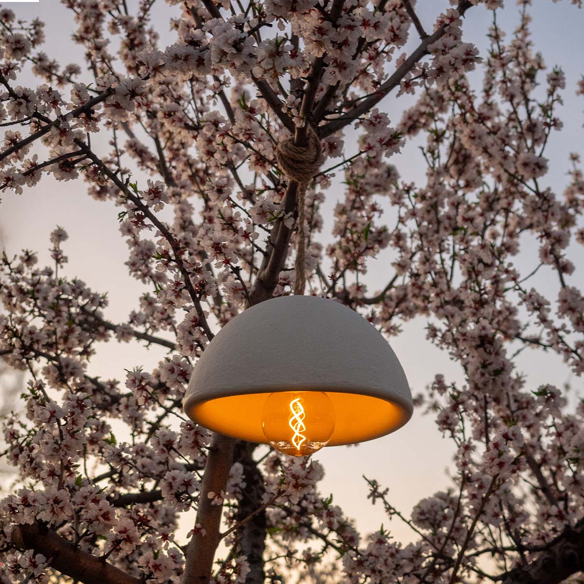 It includes a portable rechargeable 200-lumen bulb that requires no installation: simply bring it close to the lamp and it will attach thanks to its magnetic base. The bulb also comes with a remote control to switch it on and off and adjust the brightness level. A 3-metre rope is also included.